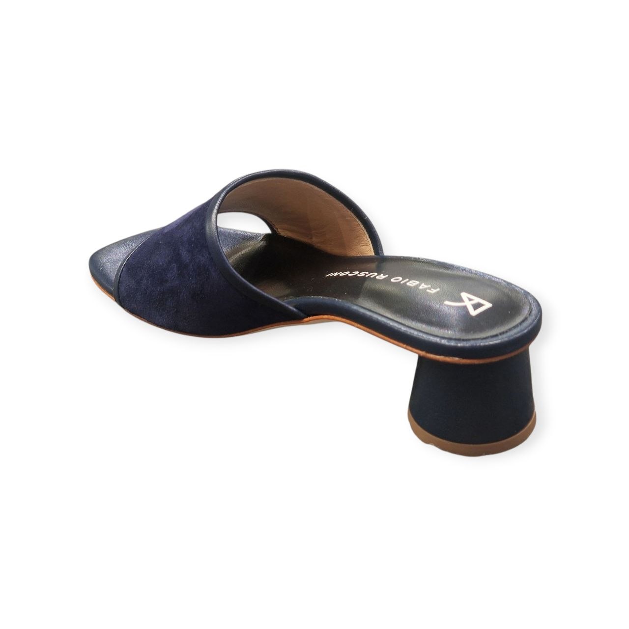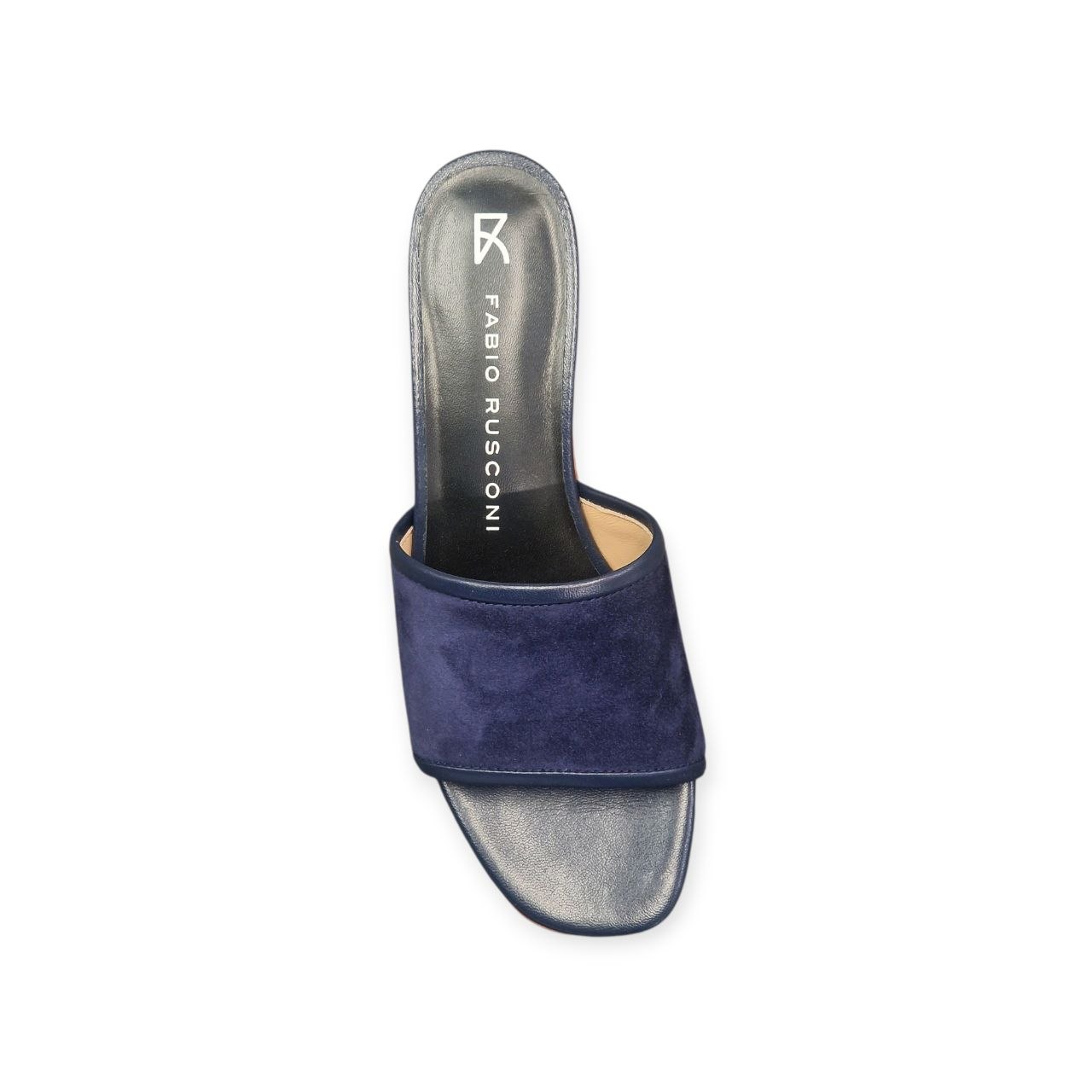 Sandali mules Fabio Rusconi in camoscio blu, un connubio perfetto tra stile e comfort. Realizzati in pelle scamosciata blu, queste ciabattine sono un must per il guardaroba di ogni fashionista. Perfetti per una serata glam o una passeggiata in centro, aggiungeranno un tocco di lusso a qualsiasi outfit.