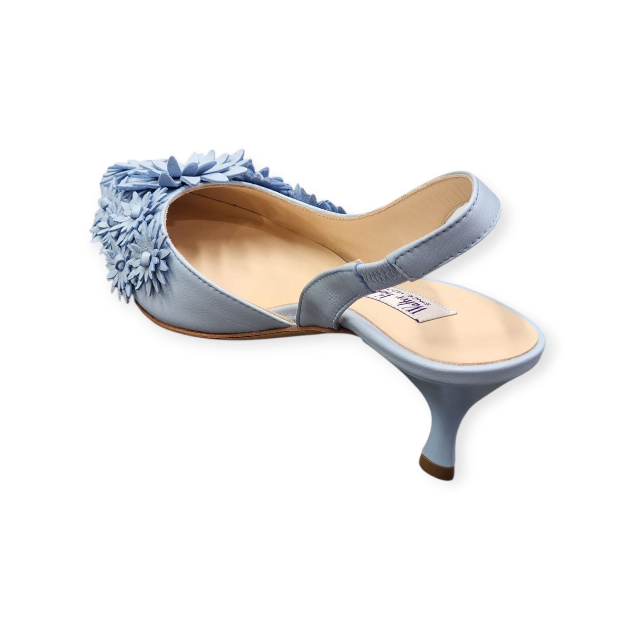 Scopri le slingback uniche di Walter Violet, perfetti per aggiungere un tocco di stile al tuo guardaroba. Questi sandali sono decorati con eleganti fiori applicati e presentano un cinturino con elastico per il massimo comfort.