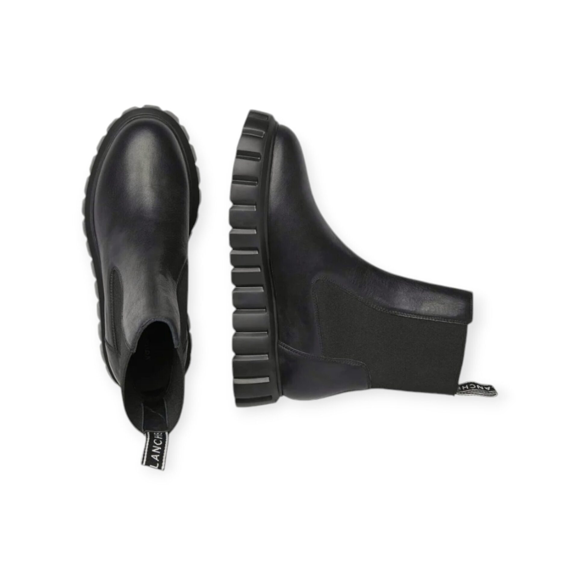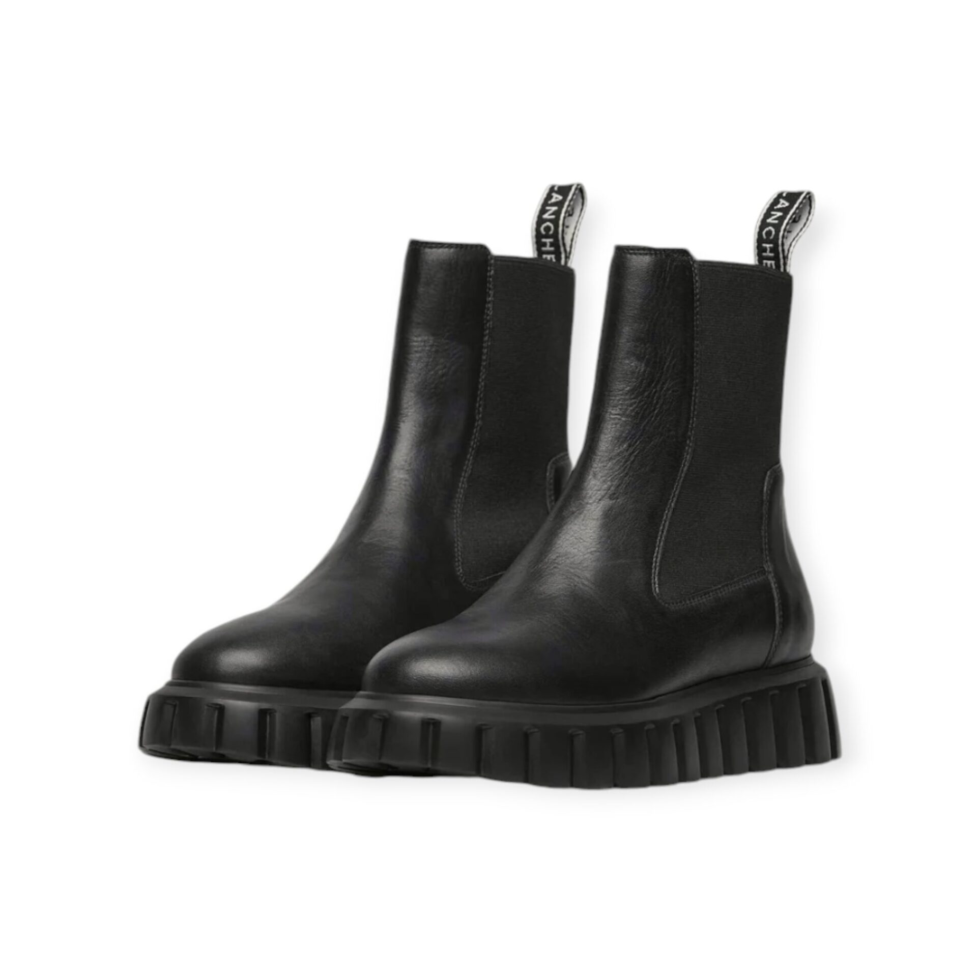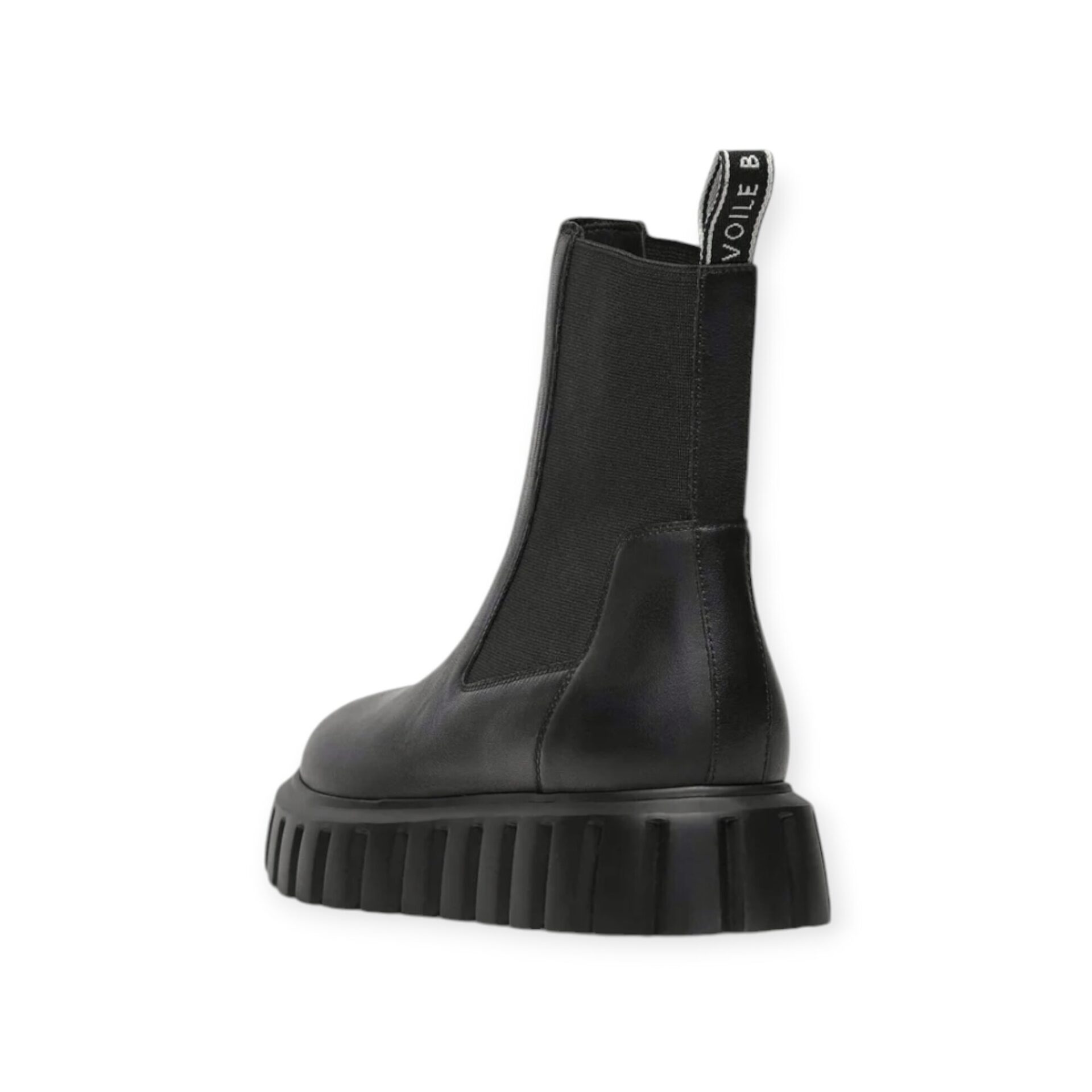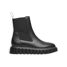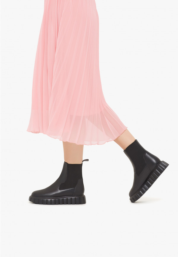 Stivaletto tipo Chelsea con tomaia in pelle e inserti elastici alla caviglia. Suola bold in gomma ultra leggera con profili bombati.