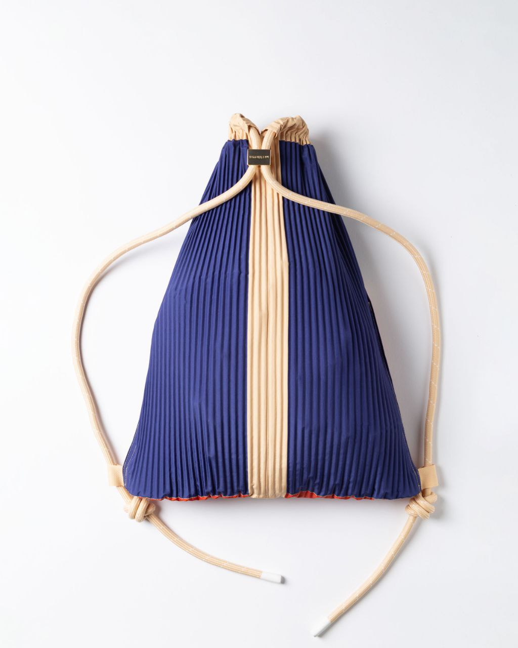 Realizzato in tessuto effetto seta 100% poliestere riciclato, morbido e leggero, con rivestimento interno nello stesso materiale. La chiusura con coulisse permette di aprire e stringere lo zaino in modo semplice e sicuro.